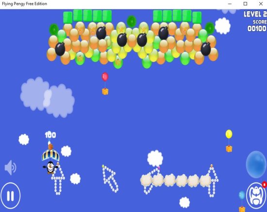 Flying Pengy Free Edition is a Windows 10 arcade game app with a flying penguin and lots of blocks, enemies, power ups, bubble pops, etc. At the starting of the game you will witness a penguin jumping out of a plane with a parachute. The penguin has to smash the bubbles, balloons, blocks, etc. using the basketballs, boomerangs, etc. Collect all the falling stars.