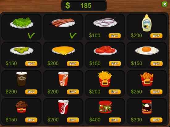 The above screenshot is from level 5 where I have been able to add two more ingredients to my burger item list.