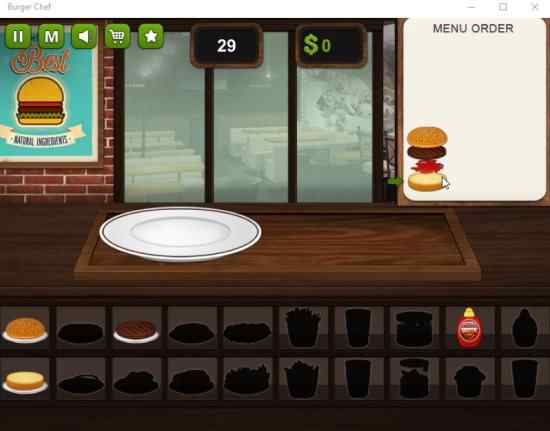 Burger Chef can be downloaded from the Windows 10 store or from the link given at the end of this article. When you start this app you will see an interface as shown in the screenshot below.