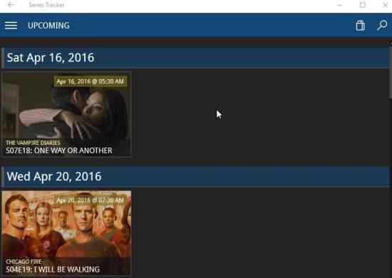 Series Tracker is a free Windows 10 TV series tracker app to keep a track of your favorite TV show episodes. The app lets you search and add your favorite TV shows to a watch list. Through this watch list you can keep track of any episodes you missed, upcoming episodes and dates when they will air. If you follow a TV show and never want to miss a episode, then you can try out this app which makes it easy for you to keep track of your favorite show.