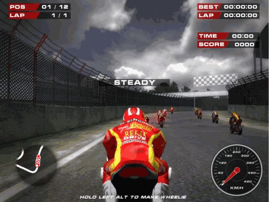 SuperBikes is a free bike racing game for PC. Masculine sports bikes, high octane speed, burning racing tracks, and smell of fuel burning; what excites a man more than these things? This game has all (unfortunately, except the smell).