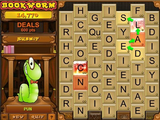 BookWorm is a free online word puzzle game. Find words in jumbled letters which are placed randomly on a board and link them.