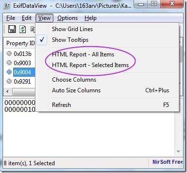 - When you click or select any data in upper pane, the lower pane displays all the exif data information such as hex dump values or time and date creation of data.
