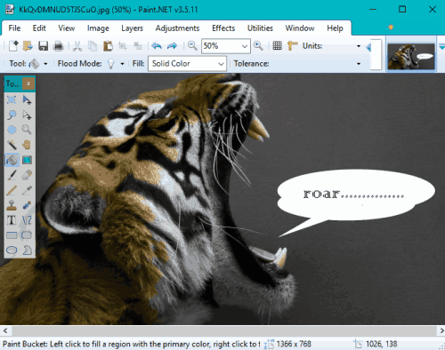 Above you can see a cloud shaped speech bubble added by me in an image using this free plugin. You might also feel the need of colorful bubbles, but only simple bubbles can be used. However, you can use Paint.NET’s color bucket to insert the color inside the speech bubble.