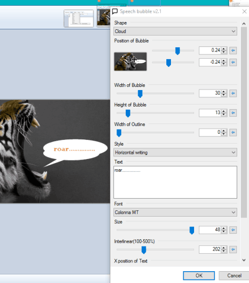 Use the options and keep looking the changes in the image. When your speech bubble is set, press the OK button to close the window. Finally, you can save the output and use the image.