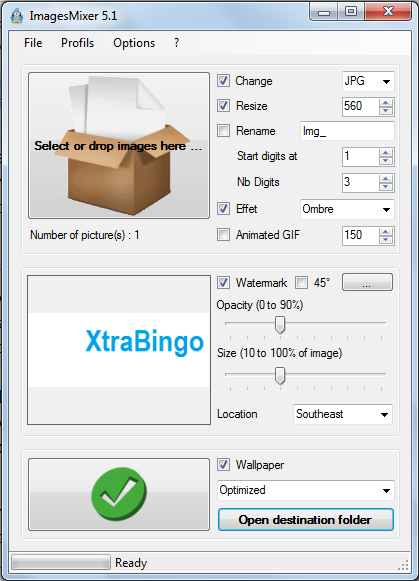 After you are done making the changes and selecting your preferences you would have to click on the Green Tick at the bottom. This starts the entire process and would take around 5-6 seconds to complete. Now you can view the image by clicking on Open destination folder at the bottom of your main window.