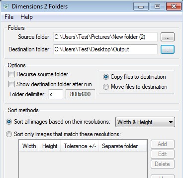 Sort Images Into Folders Based On Resolution: Dimensions 2 Folders