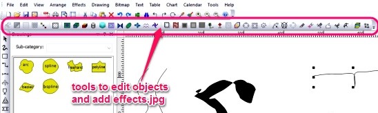 This free vector graphics editor is simply not just a vector drawing tool, it provides a powerful set of editing tools to edit the drawn objects. You can modify the form (outline) of drawn curves (lines), zipper (create wave) the closed object’s outlines, assign colors, or gradients, or fill a texture, and add some 2D and 3D effects on the objects, like: Blend two drawn objects, 3D extrude, 3D revolve, Fancy 3D, Add contour, perspective, Skew, push pull, ripple, twirl, drop shadow, road effect, Blur effect, bevel, cast shadow, reflection and lot more. All these tools are present on the Tool bar (present at the top). All you have to do is select the object from the page and then, click on desired to apply the editing/modifying option.