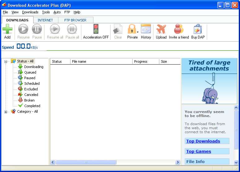 Free Download Accelerator Plus comes real handy when you try to download large files, or want to download many files. DAP takes care of all of them by itself, resumes the download in case download is interrupted in between, and even scans them to ensure the files are safe.