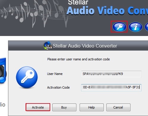 After this, open its main interface and click on the key icon (as highlighted in below screenshot). It will open a small window where you can enter username and activation code and activate it by hitting on the Activate button.