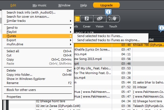 You can also use Edit menu to upload a selected track to mufin.drive. Edit menu also provides multiple options such as to import or send tracks to iTunes, access properties of a music track to information and modify ID3 tags etc. If you quickly want to access edit menu options, then simply right-click on display and you will get all the options.