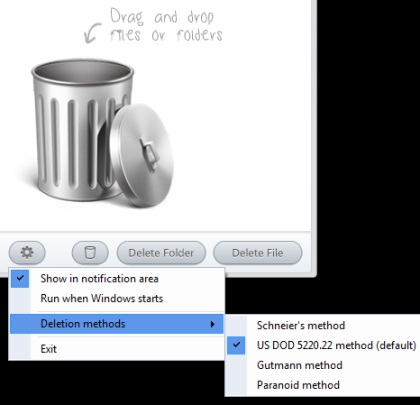 • There are four different methods available to permanently delete files: Schneiner’s method, US DOD 5220.22, Gutmann method, and paranoid method.
