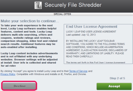 First install Securely File Shredder to PC. Download link can be found in the end of this article. Installer for Securely File Shredder is ad-supported, which offers extra tools (like wajam, lucky leap, etc.). You can skip unwanted tools by tapping on the Decline button, just like visible in screenshot below: