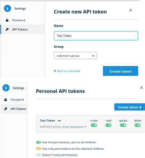 Next thing you can do in Basertow is create an API token. In case you want to access data from a specific group that you have created her you can easily do that. Just create a token in the API section in Settings. Select a group for assigning a token to and specify the access type. After that, you just go to the API docs and learn how to access data from your database.