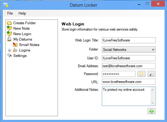 Datum Locker is a free password and note management software for Windows which comes with support for data encryption, for extra security. Passwords and notes that are stored will be secured so that if the intruder doesn’t know the access password they will only see strange symbols. Main use of Datum Locker is secure and encrypted storage of online accounts and passwords, note keeping is just an added bonus.