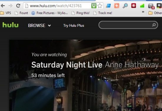 At the moment, Media Hint is the best solution I have come across to watch Hulu, Netflix, and listen to Pandora. I am not sure how long will it last, but I am going it to the best till it lasts. There are just too many series I have to watch. First let me finish the SNL; Anne Hathaway is doing a nice short.