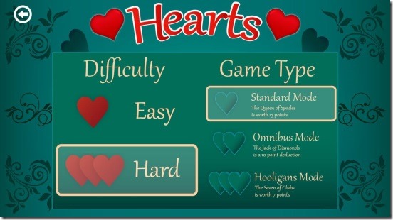 Hearts Deluxe is a good free Windows 8 hearts game app. It does requires your complete focus in the game. As a tip try to finish a suits cards first in a particular round, and remember which cards have been dealt. I had great time playing hearts in this app. Definitely a good free Windows 8 app to try your hands at.