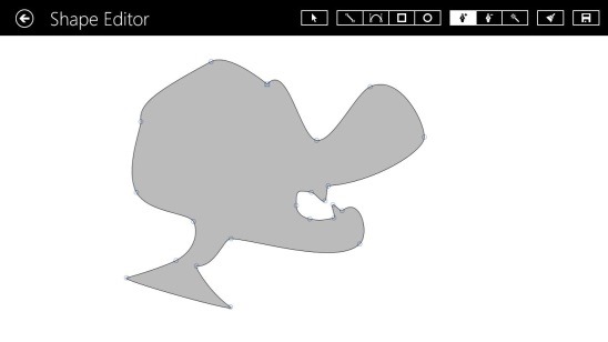 Working on the app is pretty easy. You can use some templates that are already present in the app, or create your own. Simply click on the Edit button to either type desired text or use a predefined/custom shape. The app supports over 70 good predefined shapes, that you can use for logo. And, if you don’t like any of those, then you can create what you desire. Simply, click on Add Shape button in the Shapes flyout at the right side of screen. This navigates you to Shape Editor Screen. The good thing here, is the app is supported with good enough tools. Though, it doesn’t gives any instruction on how to use the tools. But, they are pretty easy and are like any other graphic designing software.