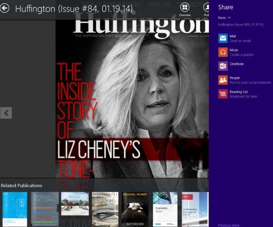 Issuu is on of the best magazine app to read free magazines for Windows 8. It has a collection of millions of completely free magazines. Search for your magazine and start reading without doing much. The app nicely displays the contents of every magazine. You can even save any magazine in stack to read it later or can even share it with anyone. You will surely find this app to be useful.