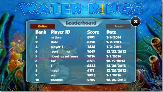 Following is a screenshot of the game showing world leaderboard: