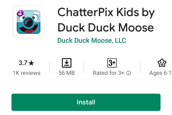 For Android phones, visit the Google Playstore App and search for the application ChatterPix Kids by Duck Duck Moose. Alternatively, you can download the application by clicking here. For Apple users, you can download the application by clicking here.