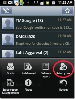 - You can also make any of your contact numbers as a private number from within the app. The private box in the app is password protected. You can view all your private messages in the private box of the app.