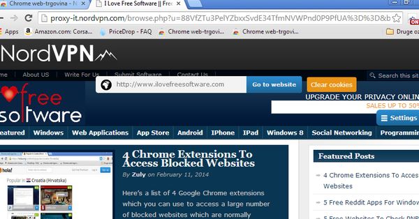 Social networks and video sharing websites are blocked in a lot of different parts of the world. To hide your IP and access them with NordVPN, left click its top right corner icon to turn it on, open a new tab and type in the web address that you would like to visit in the toolbar at the top that pops up.