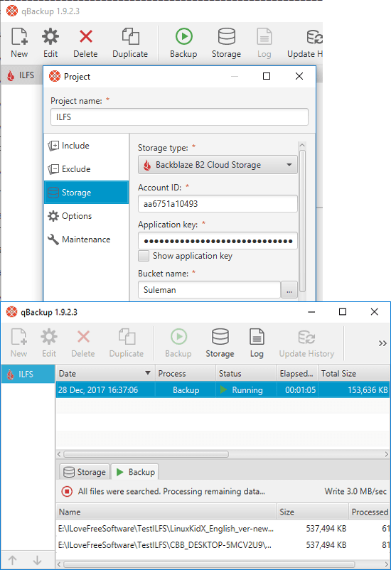 Using this software to backup files from PC to cloud is very simple. After installing, you have to create a new project in it and then specify the local folder to backup. Also, in the project, you will have to specify the Account ID and Application key to login. You can choose any bucket from the cloud to which you want to upload files from your PC. You can even specify files that you want to include in the backup or exclude. After all set, you can start the backup process and it will upload all the matching files from your PC to your Backblaze B2 bucket.