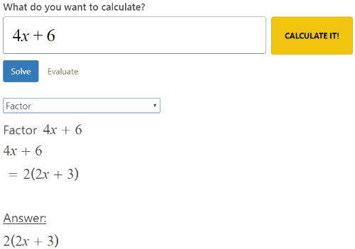 This (Hackmath.net) is another online calculator with steps. The site has a very simple format to answer the calculation. You can just enter your equation and then the online calculator will answer the question.