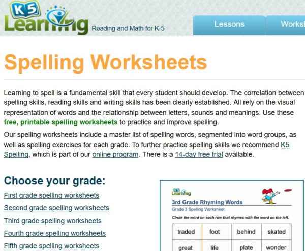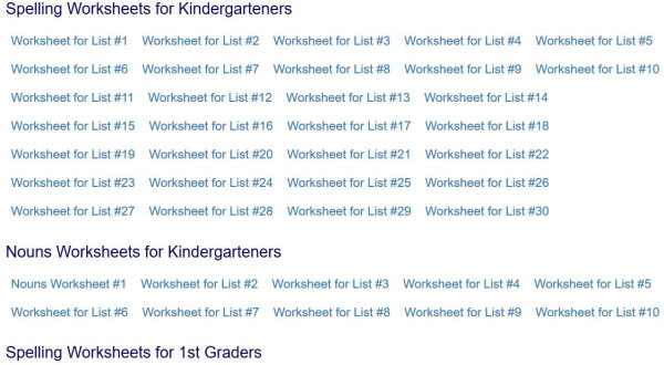 Home Spelling Words has lots of spelling worksheets right from Kindergarten to grade 9. You can find worksheets covering various topics as well. The spelling worksheet section of the website can be seen in the screenshot above.