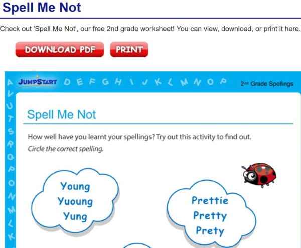 Jumpstart has some good worksheets to practice spellings. As you can see in the screenshot above, there are some nice spelling worksheets offered by this website. To open, choose anyone of the worksheets. The worksheet will open up with a small image and some description about it. There will be a get it now button next to the worksheet image. Click this button and the worksheet will open in a new page.