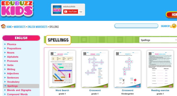 edubuzz kids is a nice website with lots of worksheets. Among these worksheets you will find a lot of spelling worksheets as well. Click the given link and you will be taken to the spellings worksheet section, as shown in the screenshot above. Each worksheet thumbnail has its name and grade mentioned below it. You can choose anyone you like to download.