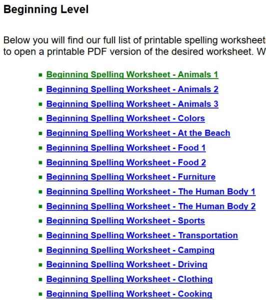 Super Teacher Worksheets is a nice website with some good spelling worksheets. The spelling worksheets in this website are available grade wise i.e. from grade 1 to grade 5. You can select the grade that you are looking for and all the spelling sheets available under that grade will open up. Now choose a sheet and it will take you to a page with spelling, activities, and worksheets on it. When you click on one of these worksheets it will open up in full page mode in PDF format.