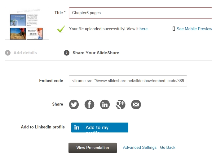 While you are uploading the presentation, in PDF format, you can choose whether to keep it public or private. Then you can add other details like category, description and proceed forward. The last step in the procedure is to share your file. It can be shared on various platforms, via email, and also embed it.