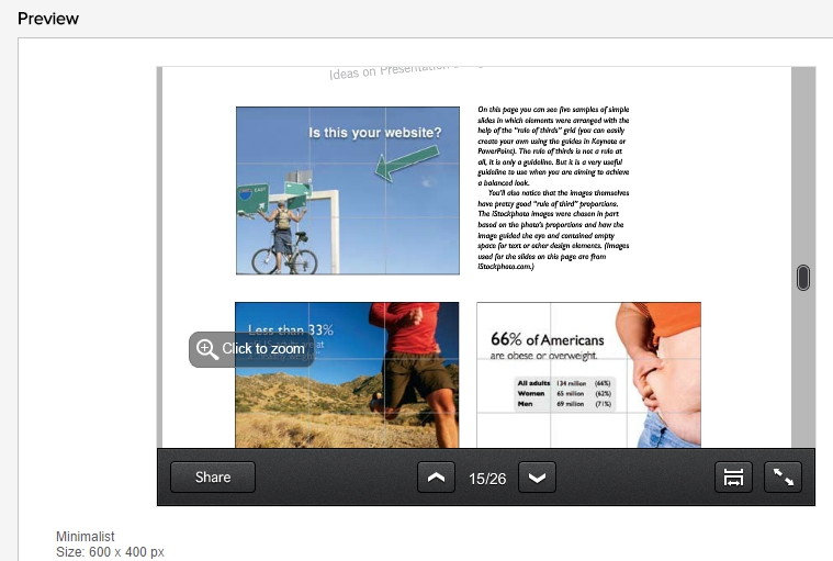 Sharing the presentation online is also easy. There are various ways to share your presentation. You can publish it in the gallery of the website, or copy the link of the presentation and share it with others. There are other ways of sharing as well that you can look up to. Try it out from the link given above.