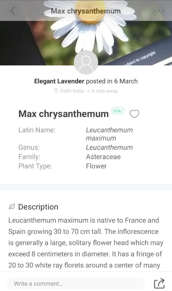 In the description of the plant you can view its name, genus, family, and plant type. If you want, you can also write a comment for a plant.