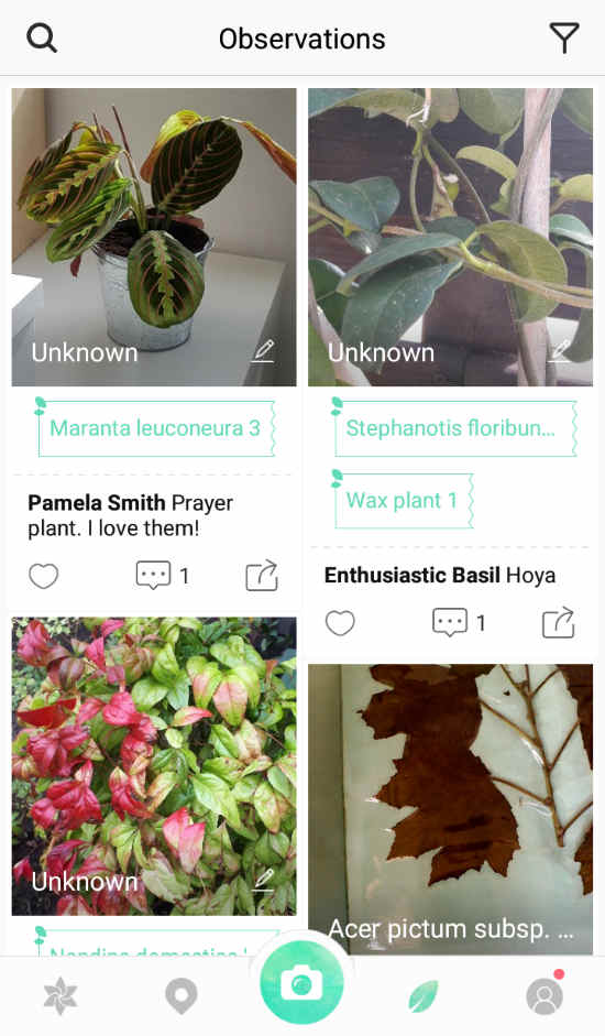 If you want to explore the observations made by other users, there is an observation page for the same. Here, you will find all the plant observations made along with photo, plant name, description, comment, etc.