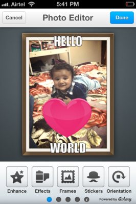 Frames: Offers various frames which can be added to your photos. Again choose the one you like.