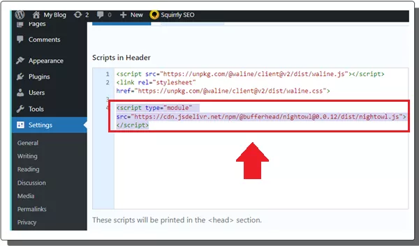 In order to use the Nightowl script, you need to have access to the backend/frontend code of your website. If you are using WordPress, then it is much easier. There’s a WordPress plugin called Insert Header and Footers that you can use.