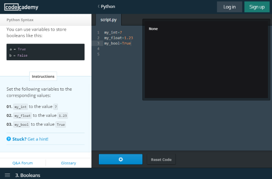 CodeAcademy is another free website to practice Python online by solving problems and puzzles. You will have to create a free account on it to access Python course and problems to practice. After that, you can start practicing Python online using its Python shell, as shown in the screenshot above. The problem statement of the puzzle is written on the left panel, the middle section is dedicated to writing Python program code to solve that problem and on the right, there is a small Black window which displays the coded program output. You can only progress to the next Python problem only if you solve the current one. So, what are you waiting for; visit the link provided above and start practicing Python online on CodeAcademy. It also provides course modules to practice HTML online and other programming languages online.
