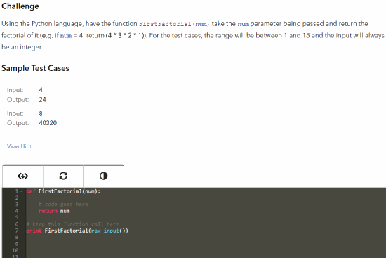CoderByte is the last website on my list to practice Python online. It is a pretty straightforward website as you don’t need to signup; just visit the link provided above and start your first challenge. However, if you want to submit your code, then you will have to create an account. It then prompts you to select a programming language in which you want to solve the problem including Python. The other supported languages are JavaScript, Ruby, Swift, C++, etc. It then opens its online IDE to write the solution code and win the challenge. The solutions to problems are also provided.
