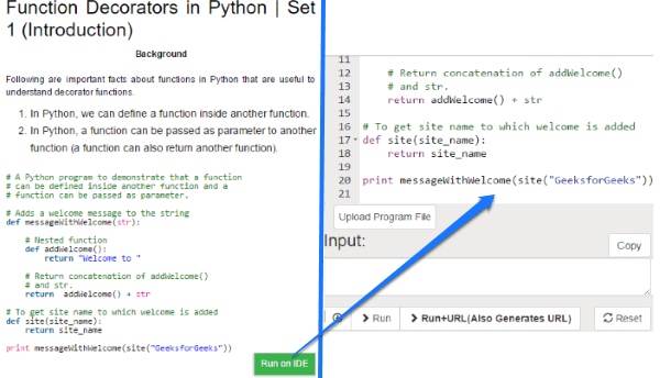 GeeksforGeeks is a popular online portal for computer geeks to learn about major CS concepts like data structures, algorithms, etc. I have been using it since my college days to find solutions to programming problems in C++, C#, etc. In addition to that, it also provides an online IDE to practice Python problems on your own. You don’t have to create any account to use it, just visit the link provided above to access all Python-related content with some problems at the end of the web page. It covers all Python concepts from basic syntax to more advanced concepts like OOPS, exception handling, etc. So, basically, it can be quite handy if you are just getting started with Python and want it learn it from the scratch. You can run the code written in the Python articles on its online IDE or Python console to play with it and learn faster.