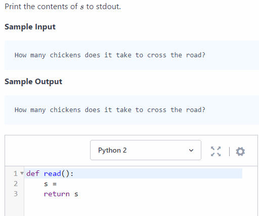 Hackerrank is one of the most popular websites on my list to practice Python and other programming languages online. It provides a number of different introductory Python challenges to get you started and then difficult problems to test your coding skills. You can also use it to practice other programming languages like C++, Java, JavaScript, etc online. You need to create an account on it to practice Python problems and solve them. After login, visit the link provided above to access Python challenges. Open any one of them to read its complete problem statement and program input and output specifications. After that, you can continue to write the code to solve the problem in its IDE, as shown in the screenshot below.