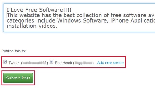 You need to login to your account(s) and authorize this web service to use them. After that you can post messages to all your added services.