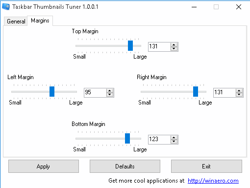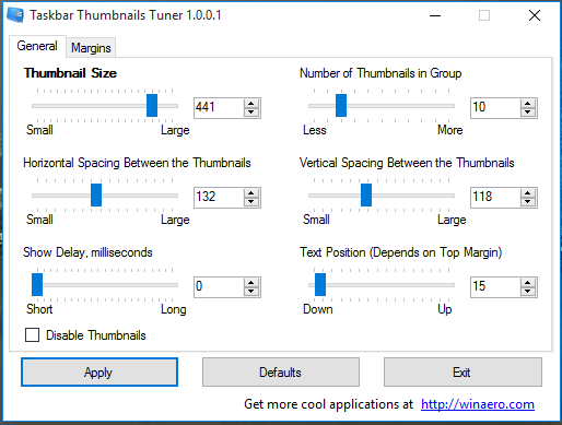 This is indeed a good software. The whole control to set the taskbar thumbnails size, margin, and disable the thumbnails remain in your hand completely. You can try it.