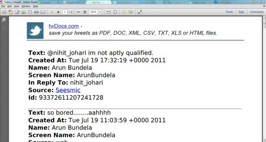 twdocs is a free web application that lets you save and backup tweets as PDF, DOC, TXT, HTML, XML, CSV, or XLS files. It’s an easy to use service that enables you to export all your Twitter tweets, messages, and search results in whatever format you desire. The service offers a nice set of options to safely backup your Twitter feeds and doesn’t even require any prior registration to utilize its benefits.