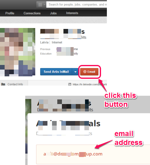 Here is the link which will help to open the homepage of its Chrome extension. When you install its extension, open LinkedIn profile of a particular user. There you will find Email button. Click that button and it will try to fetch the email address (if available) of that person. Once the email address is found, you can contact that person.