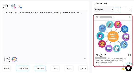 10. Next, click on the ‘Preview’ tab at the bottom to preview the post. You can use the corresponding icons in the panel for a Desktop as well as Mobile preview.
