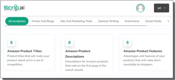 ScripAI is a free tool that you can use to generate title, description, and features list for Amazon products. If you are in ecommerce and sell stuff online on Amazon, then this tool can be really useful for you. Here it offers some ready-made templates that you can use to generate text content based on various templates. One of those templates lets you generate title, description, and feature list for various products and I will show how.