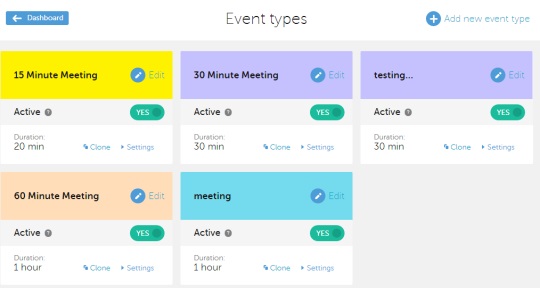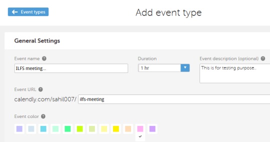 Set timings according to your availability and save the changes. In the similar way, you can add more and more events and can view or edit each event using Event types.